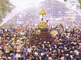 is Wan Sungkharn Lohng. This is a day for house cleaning and general preparation for the New Year. In the evening it is traditional for Thais to dress up as a signal of the coming new year.In Chiangmai, the Songkran procession is held on this day. This is a parade through Chiangmai comprised of Buddha images and attendants on floats, which are accompanied by minstrels and the town's people. The procession begins at Nawarat Bridge on the Mae Ping River and moves the Thapae Gate before approaching its final destination of Wat Prasingh.